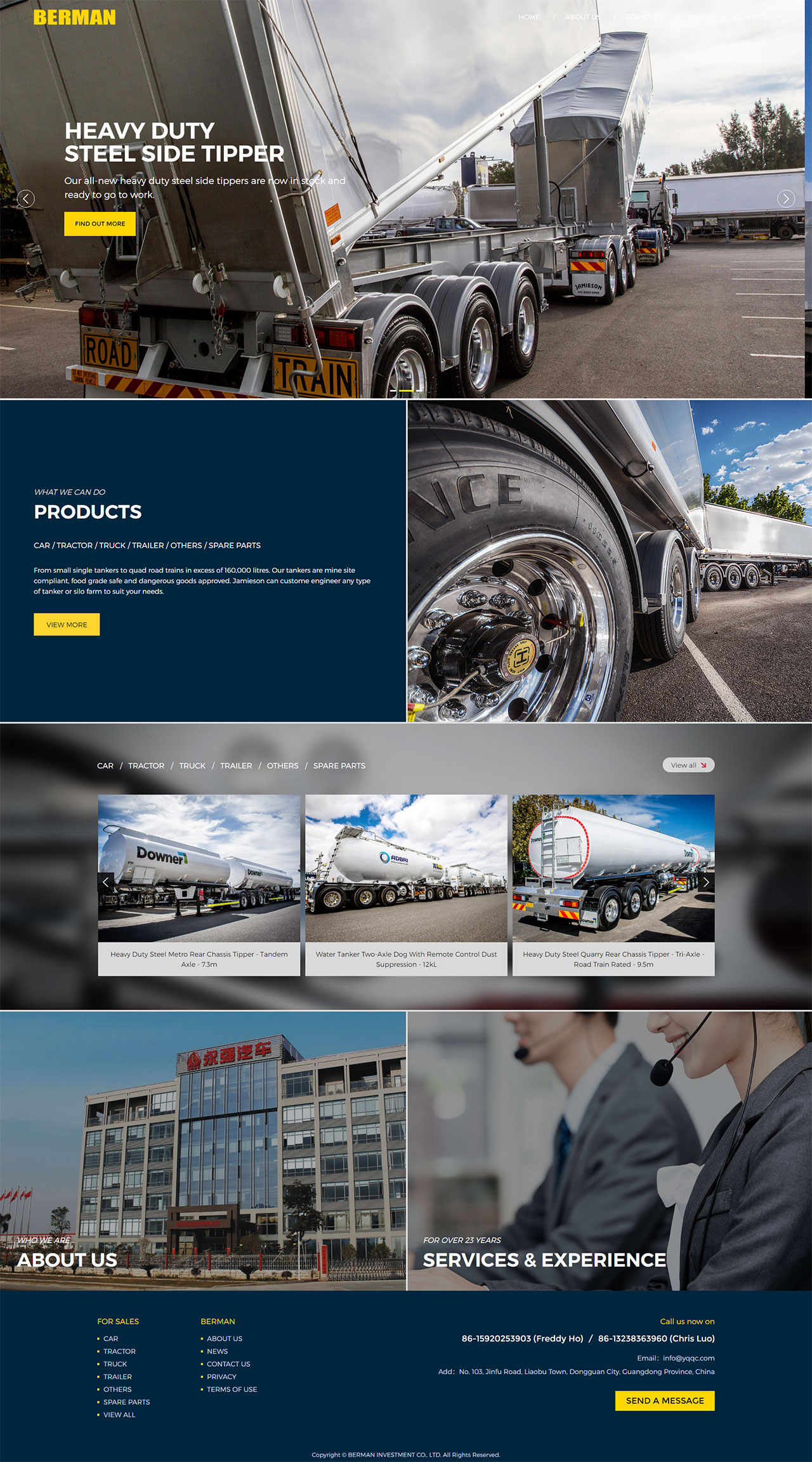 服務內容:外貿網站建設、英文網站建設 Berman Investment Co., Ltd. was established in Hong Kong on February 29, 2012. We provide diversified products and services to meet the different needs of customers. And our business cover the distribution, export, supporting testing, spare parts supply,