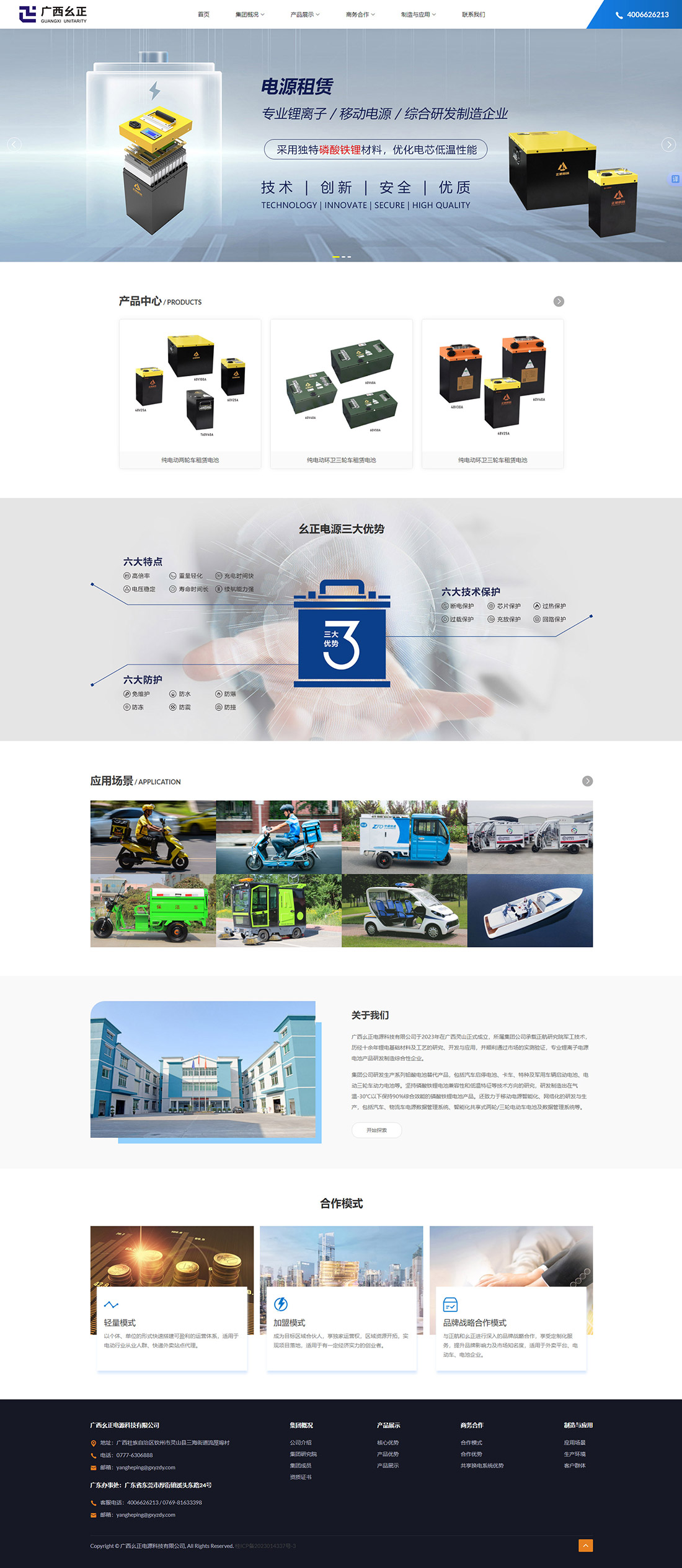 廣西幺正電源科技有限公司于2023年在廣西靈山正式成立,所屬集團公司承載正航研究院軍工技術,歷經十余年鋰電基礎材料及工藝的研究、開發與應用,并順利通過市場的實測驗證,專業鋰離子電源電池產品研發制造綜合性企業。
